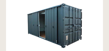Steel sliding doors are created as an alternative to roll up doors when full size wall height is needed. These are framed from the corrugated side and are slid along a fixed track. Sizes available range from 5ft to 15ft in width. Another great thing about this door is that it is virtually invisible when the container is shut and can be locked from the inside, making it very safe and secure.