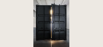 Customer required compartmentalized space inside a large warehouse for changing rooms, product display, and office suites. Container Alliance utilized 40’ high cube one trip double door containers with custom cutouts, partitions, lighting and electrical work. All units were custom painted matte black. The challenge for the client was getting the containers into the warehouse and arranging them perfectly