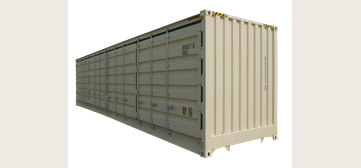 Our High Cube Open Side One Trip Containers are a full foot taller compared to standard height containers giving you maximum storage capacity and an additional 12-inches of interior headspace. Wide bi-fold doors are installed on one side of this extra-large 40 foot container giving you options to open the entire side of the shipping container for easy access to all your valuable cargo.