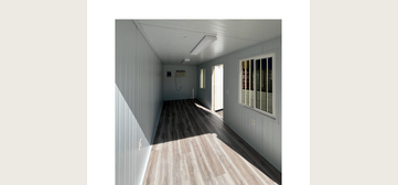 Our panel insulation is steel skinned panel that snaps together to give a sleek look while covering the sidewalls and ceiling. This option is very clean and professional looking which is why you it is used in many of our portable office units. Panel insulation is a great option and only taking up 2” of space on each wall. It is important to consider if you will be hanging anything on these walls because it is much harder to drill into because the insulation is not affixed to the container walls so it lacks the strength needed for hanging anything.
